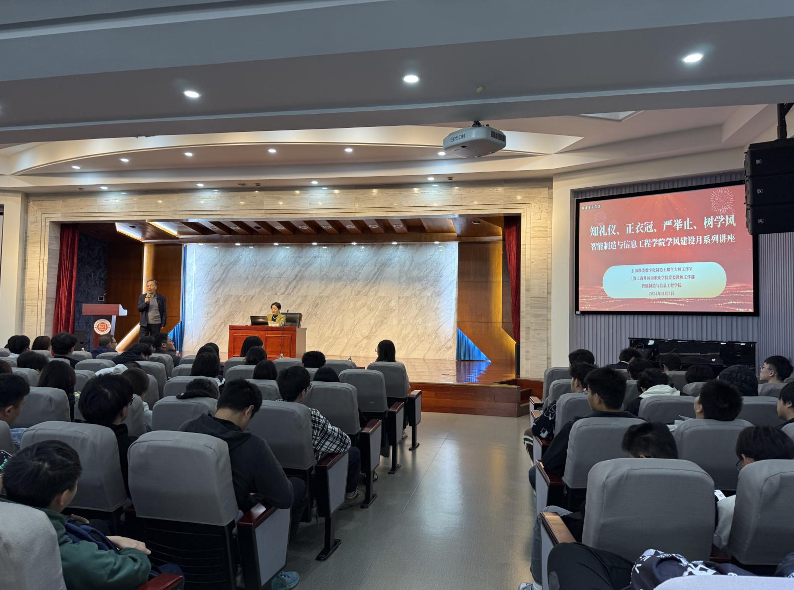 为进一步响应《上海工商外国语职业学院关于开展2024年教风学风建设活动》文件的精神,培育新时代大学生优良的精神面貌和严谨的治学态度,11月7日,智能制造与信息工程学院联合上海教委数字化制造王耀生大师工作室、上海工商外国语职业学院党委教师工作部邀请了上海电机学院电气学院副书记、副院长房晶为智能制造与信息工程学院大一、大二年级全体学生做了主题为“知礼仪,正衣冠,严举止,树学风”的讲座,出席此次讲座的有智能学院院长张敏良、教学副院长王宇翔,专业课老师及辅导员。