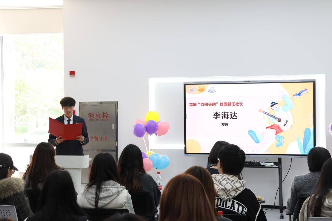 本届新任社长李海达发言。他向大家阐释了社团“学习-实践-竞赛-发展”的成长体系以及各类创新创业赛事的具体资源,强调社团“包容试错、互帮互助”的氛围,呼吁新老社员携手,以敢闯的勇气和会创的能力,共同书写社团的精彩未来。
