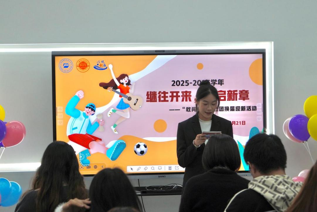 2025年11月21日下午,校级“敢闯会创”社团换届迎新活动在7号楼一楼实训室举行。现场邀请到创新创业学院院长胡凤麟、副院长唐三三、社团指导老师们以及社团的新老社员们。本次活动由关务2401班朱静怡同学主持。