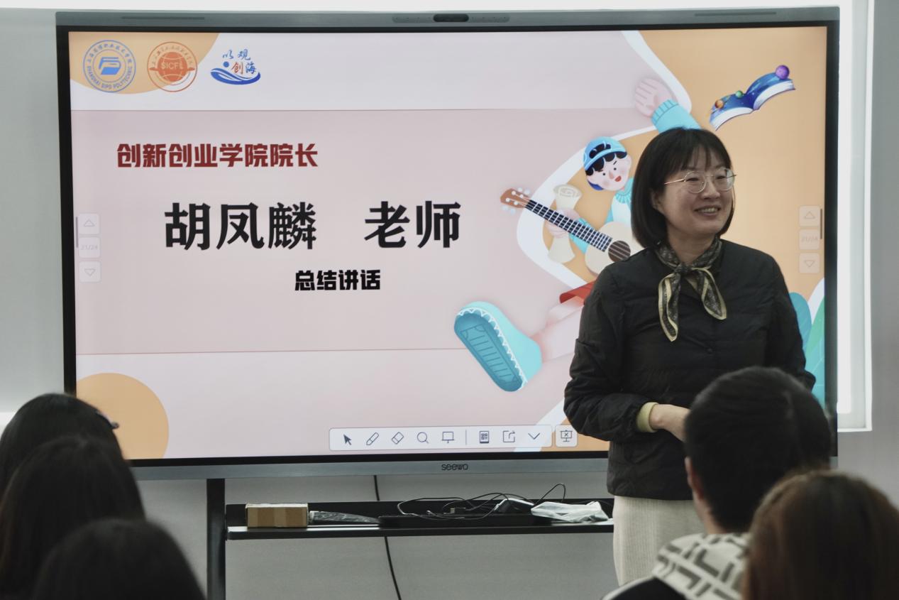 最后由创新创业学院院长胡凤麟老师总结讲话。胡老师不仅介绍了这个社团的创办缘由,近期社团获得的荣誉,还向同学们提出了3点希望,第一希望大家灵活运用知识,去做真正的实践项目;第二希望大家都能成为“火种”,能够找到志同道合的伙伴,一起做优秀的金点子项目;第三希望大家不要害怕挫折和失败,并且期待大家加入这个社团后,能够围绕共同的理想信念,实现师生共创。