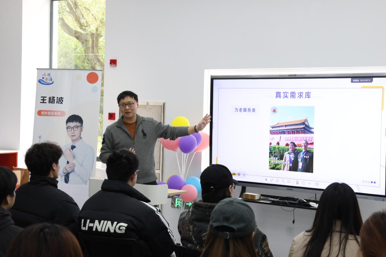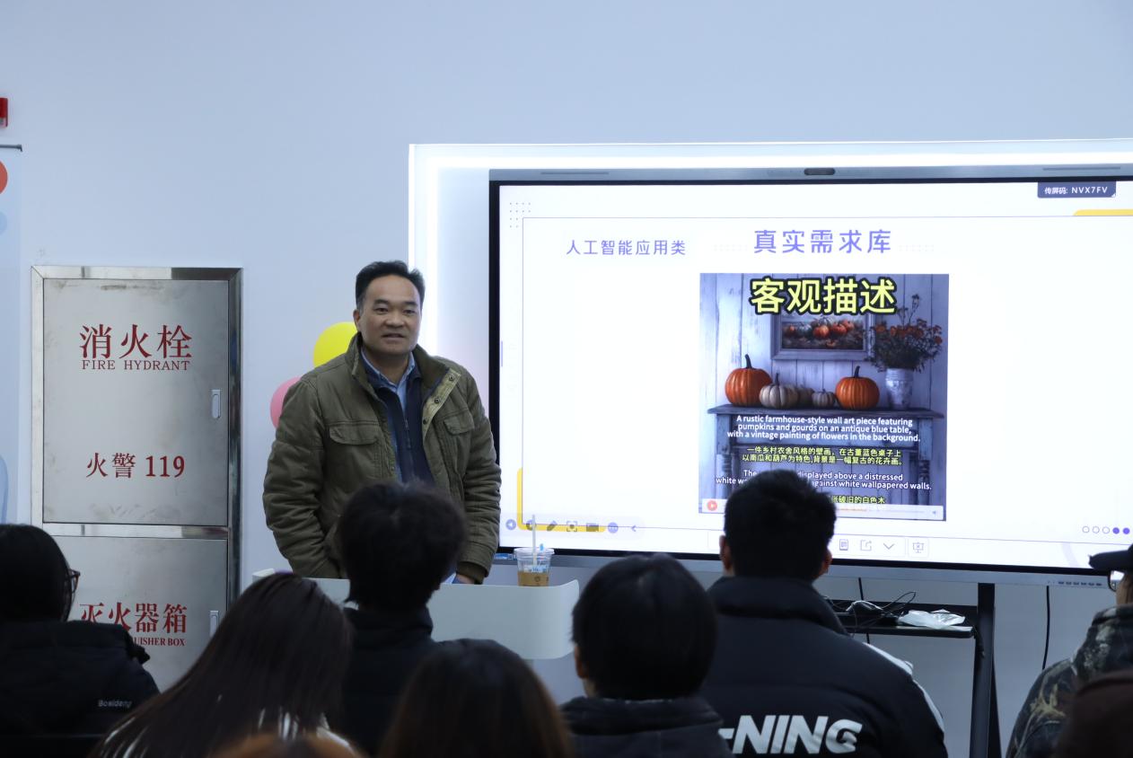 活动开场,上海市创业指导专家志愿团浦东分团专家邝桂源、王杨波两位行业资深专家带来了干货满满的分享与指导。专家王杨波结合自身投资孵化百个创新型项目的丰富经验,详细介绍了盘古创业园区的生态布局与资源优势,并发布了涵盖为老服务、文化创意、体育+文旅、校园内生项目、人工智能应用五大类别的“真实需求库”。从“动起来的老照片”到地域文化IP打造,从拳击特色品牌赛事策划到人工智能赋能画作展示,一个个源于市场一线的真实需求,为学生提供了丰富的创新切入点。