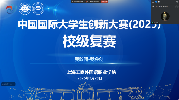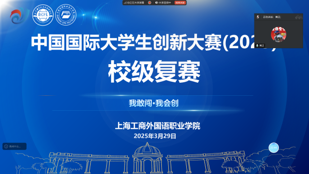 春潮涌动,创新激荡。在党的二十大“加快实施创新驱动发展战略”的号召下,2025年3月29日至30日,上海工商外国语职业学院、上海思博职业技术学院“中国国际大学生创新大赛(2025)校级复赛”在云端上演巅峰对决。校长黄正、副校长姚大伟、创新创业学院院长胡凤麟、副院长唐三三、双创团队的老师以及各二级学院参赛队伍和指导老师出席本次线上复赛。本次大赛以“我敢闯,我会创”为精神内核,经过前期各二级学院的精心选拔,共有来自22个工商外、25个思博的优秀项目脱颖而出,进入复赛环节。各参赛队伍在云端赛场上展开智慧交锋,以青春之名谱写新时代双创教育的华彩乐章。