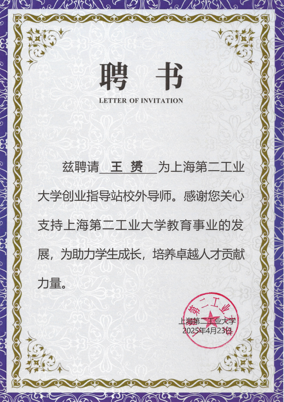 王赟老师受邀为上海第二工业大学创业指导校外导师