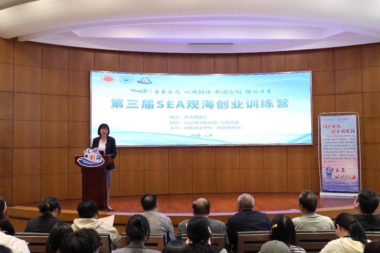 开营仪式由创新创业学院院长胡凤麟主持,她首先向参加本次开营仪式的各位领导、嘉宾以及全体学员表示了热烈的欢迎和衷心的感谢,并介绍了本次开营仪式的活动议程。本届SEA观海创业训练营采用“理论学习+政策解读+实战路演”集训授课模式,以鼓励学生参加中国国际大学生创新大赛、挑战杯等双创竞赛为导向,邀请上海知名双创导师授课、丰富创新创业维度,培养双创人才梯队。
