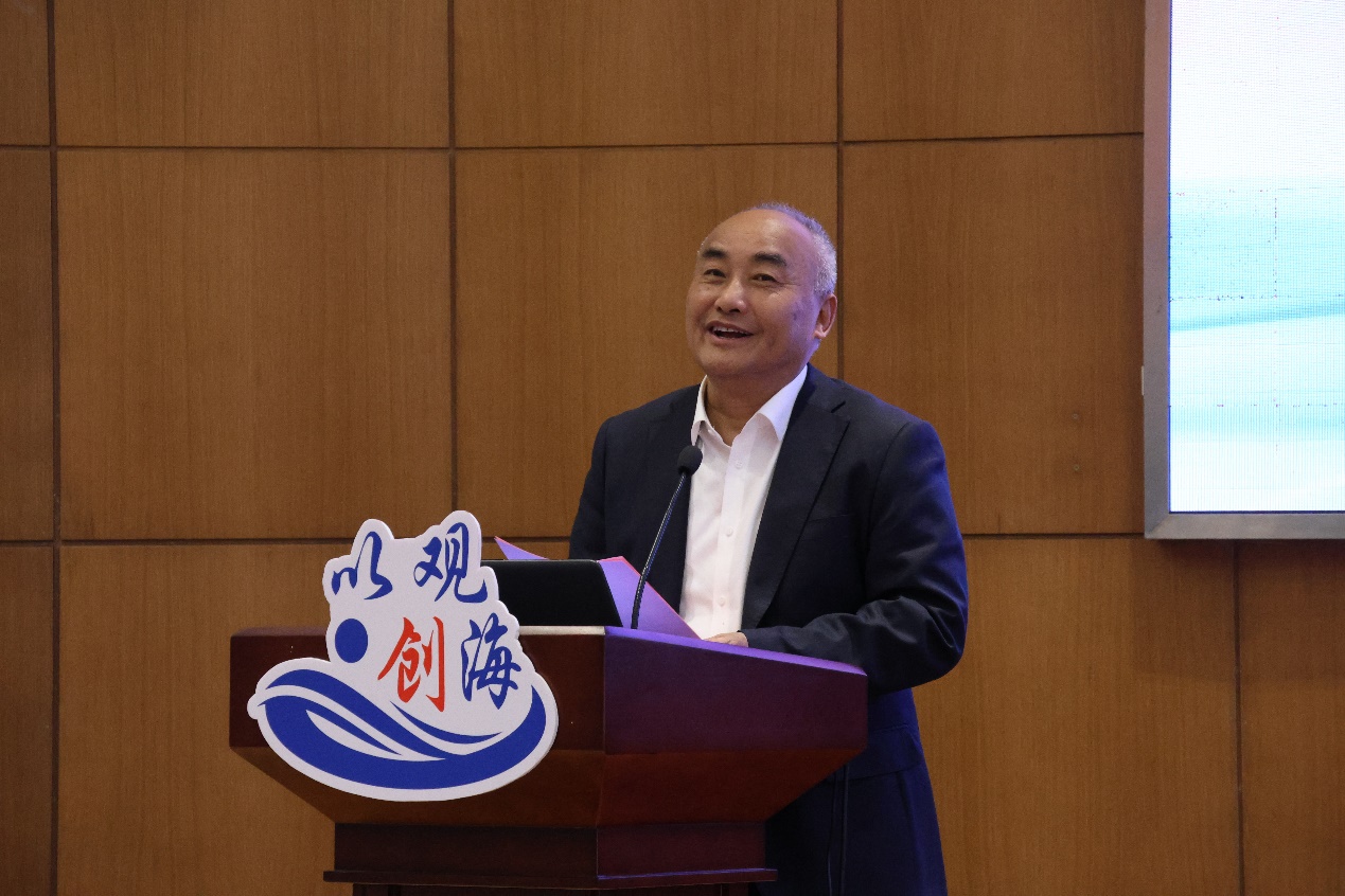 领导致辞环节,黄正校长首先代表学校向担任“开营第一课”的专家讲师上海立信会计金融学院创新创业学院院长、教务处副处长应小陆教授表示诚挚的欢迎和衷心的感谢,也对从校级复赛当中脱颖而出的32支优秀团队表示了热烈的祝贺。他指出“青春永志,以观创海,敢闯会创,继往开来”不仅是本届训练营的主题,也是新时代青年创业者应有的精神写照。本届训练营作为两校联培的首次尝试,呈现出"筹备最早、任务最大、二级学院最为重视"三大特点。黄正校长也对参训学生提出了三点希望:一要踏踏实实做实干家,珍惜与专家导师面对面交流的机会,把项目从商业计划就变成可落地的方案。第二,做勇于突破的创新者,在评委专家的指导下,要敢于打破思维定势,用创新思维解决问题。第三要做团结协作的推动者,既是竞争对手,也是创新路上的同行者。他希望参训学生以本次训练营为新的起点,在即将到来的校赛决赛当中展现最佳状态,在未来中国国际大学生创新大赛比赛中为校争光。最后他预祝本届SEA观海创业训练营取得圆满成功!