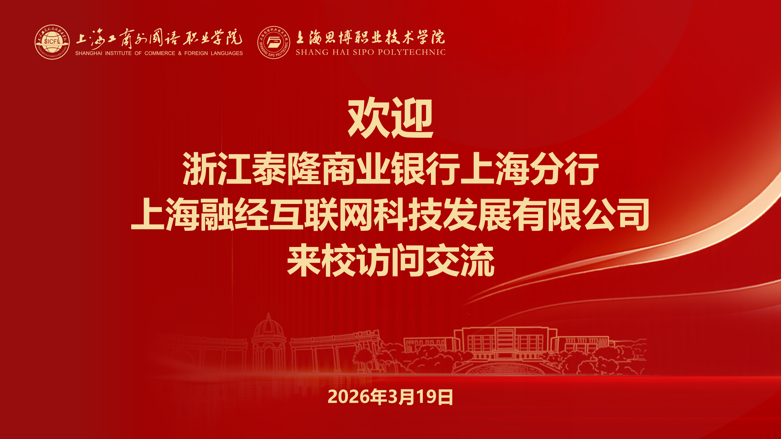 2026年3月19日下午,泰隆银行上海分行跨境金融业务部总经理孙晨、高级客户经理曹媞,上海融经互联网科技发展有限公司总经理王杨波一行莅临我校交流访问。副校长兼数字商贸学院院长姚大伟、创新创业学院院长胡凤麟及相关老师共同出席接待。三方携手探索跨境电商人才培养与创业孵化新路径,共绘产教融合发展新蓝图。