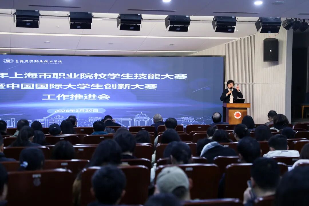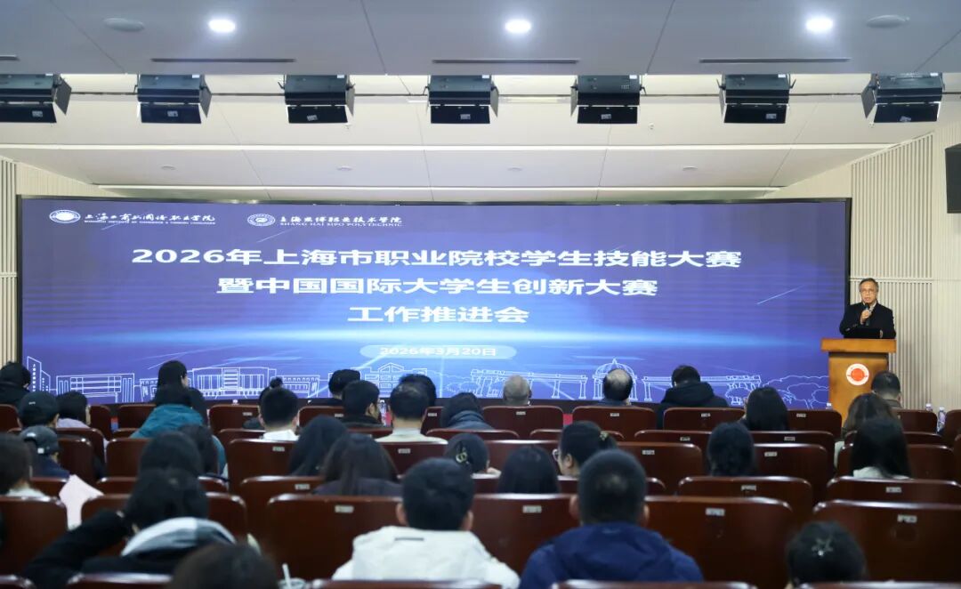 3月20日下午,上海工商外国语职业学院与上海思博职业技术学院联合召开2026年上海市职业院校学生技能大赛暨中国国际大学生创新大赛工作推进会。校领导于莹、黄正、张学龙、姚大伟、钱芝网出席会议,各二级学院院长、副院长、各赛道指导教师及教务处、创新创业学院相关人员参加会议,会议由副校长钱芝网主持。